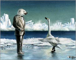 Hafiš žér heyrt um Svanavatniš?(Sjįlfsmynd) olķa į striga. 20x30